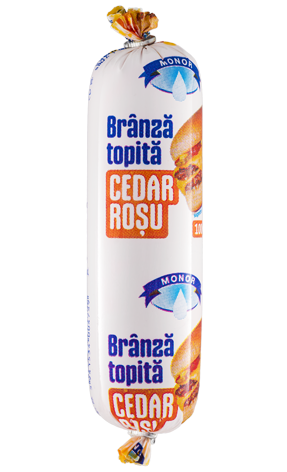Brânza cedar 50%, smântână, săruri de topire (fosfati de sodiu, polifosfati de sodiu), sare iodata, coloranti: caroteni si extract de ardei rosu. Conține lactoză.